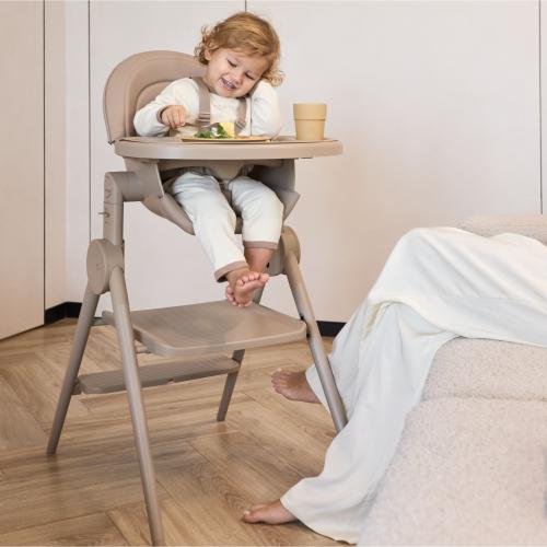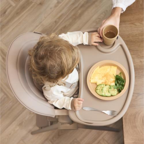 столче за хранене (6–36 месеца) – с регулируема облегалка, поставка за крачета, петточкови предпазни колани и подвижна тава с лесен за почистване капак