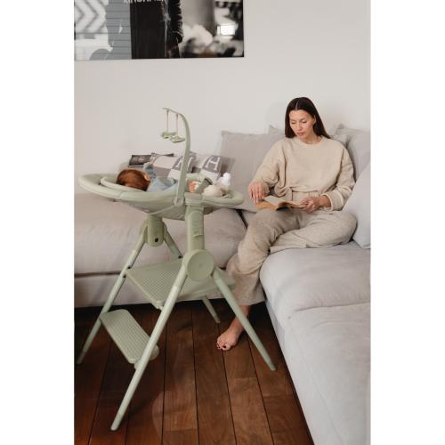 Съдържание на комплекта: основна основа, регулатори на височината, седалка за новородено, подложка за седалка за новородено, играчки за ранно развитие, столче за хранене с мека тапицерия, тава за столче за хранене, подложка за тава, предпазна кула за игра, предпазител за кулата за игра