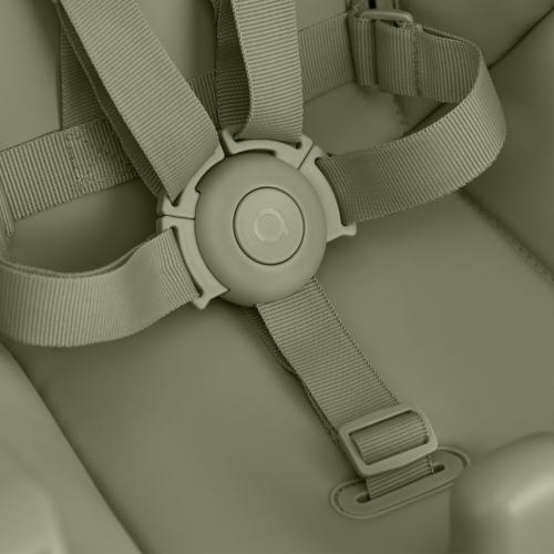 столче за хранене (6–36 месеца) – с регулируема облегалка, поставка за крачета, петточкови предпазни колани и подвижна тава с лесен за почистване капак