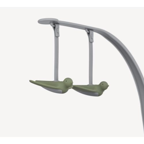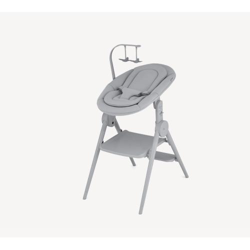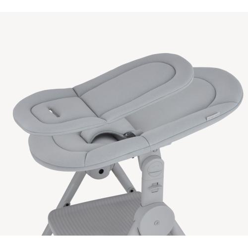 Проектирана с ергономични принципи, седалката за новородено може лесно да се регулира в две позиции на наклон и височина. Меката ергономична вложка в седалката за новородено осигурява комфортна опора. Седалката е оборудвана с играчки в контрастни форми и цветове, които нежно стимулират зрителното и сензорното развитие на бебето от първите седмици от живота му. Триточковата система за предпазни колани в седалката за новородено осигурява стабилна и удобна позиция за бебето по време на почивка и ежедневни дейности.