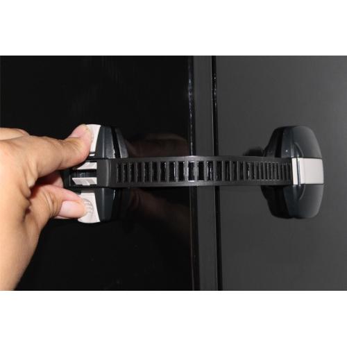 Използвайте я за заключване на врати на кухненски шкафове, хладилници, фризери, шкафове за пране, врати на гардероби, ламинирани мебели, стъклени и огледални шкафове, кошчета за боклук и дори капаци на тоалетни. Нейната гъвкавост и регулируемост я правят подходяща за заключване на всякакви мебели или уреди, с които Bашето мъниче често взаимодейства.