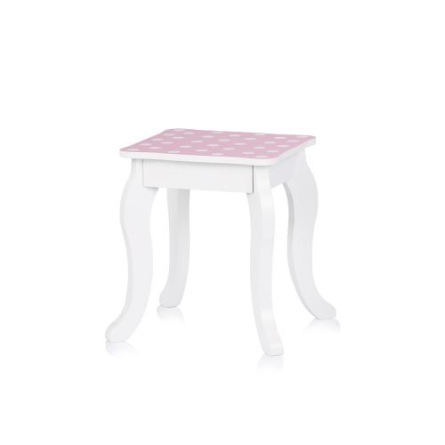 С яркия си дизайн и внимателно подбрани цветове, тоалетката е изработена с внимание към детайлите. Розовите точки придават игривост и веселие, което ще се хареса на всяко малко момиченце. Столът табуретка е направен с удобство и стабилност, позволявайки на детето Ви да седне удобно, докато се гримира или играе.