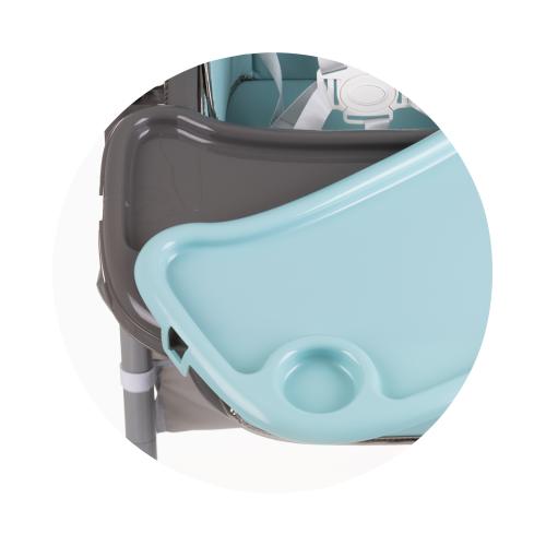 Столът за хранене Chipolino First Spoon е идеалното решение за комфортно и безопасно хранене на Вашето дете. Подходящ е за деца, които могат да седят самостоятелно, с максимално тегло до 15 килограма. Широката и подплатена седалка е изработена от висококачествена еко кожа, лесна за почистване, а 5-точковият предпазен колан с меки подложки осигурява допълнителна безопасност. Столчето разполага с четири положения на облегалката, които го правят удобно дори за по-малки бебета. Двойната табла за хранене може да се регулира в четири позиции и лесно да се отстранява за почистване, а долната част е снабдена с предпазител. За забавление на детето е добавена арка с играчки. Седалката може да се регулира в седем различни височини, а поставката за крачета има две позиции. Четирите колела със спирачка позволяват лесно преместване и стабилност. Допълнителен кош за играчки и аксесоари улеснява организацията на пространството. Столът е компактен за съхранение в сгънато положение и е произведен в съответствие с Европейски стандарт EN 14988.
