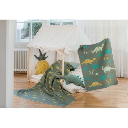 Бебешко памучно одеяло David Fussenegger, Juwel 70х90, Динозаври, Зелено