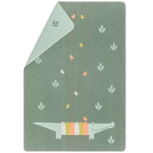 Двулицевият дизайн позволява разнообразие при употреба, а компактният размер го прави лесно за сгъване и пренасяне. Идеално е за повиване, сън или просто като допълнителен слой топлина в количката.