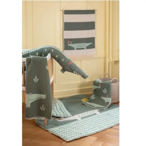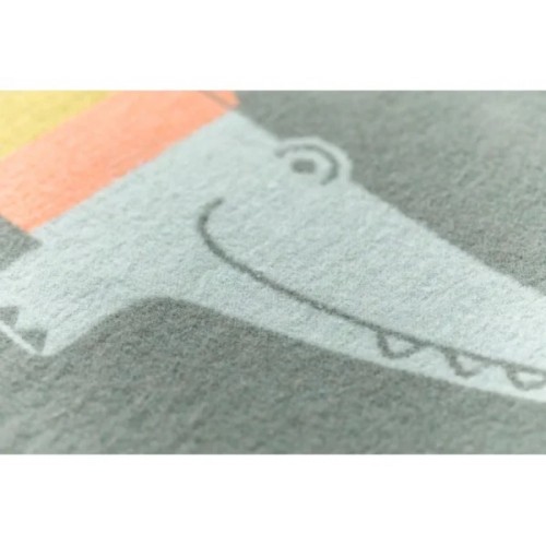 Одеялото е изработено от естествен памук с добавка на вискоза – комбинация, която гарантира мекота, дишаща структура и дълготрайност. Всички материали и бои, използвани при изработката, са безвредни за детето и отговарят на строгите европейски стандарти за безопасност.