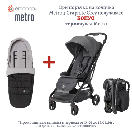 Детска количка ErgoBaby Metro 3 GRAPHITE GREY + Подарък термочувал Ergobaby