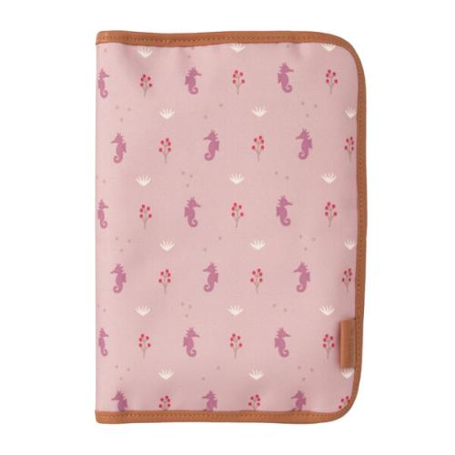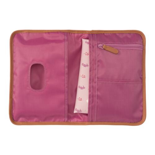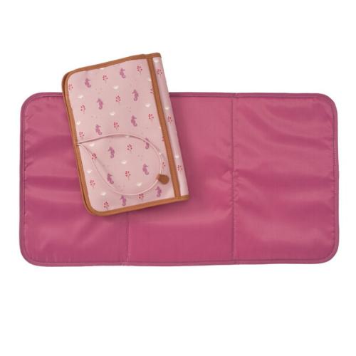 Представлява здрав калъф с ластик за затваряне, така че нищо да не изпадне. При отваряне има подложка за смяна на памперси, два големи джоба и един с цип. Подложката за преобличане се отваря лесно и се сгъва обратно с лекота. Можете лесно да почистите с влажна кърпа.