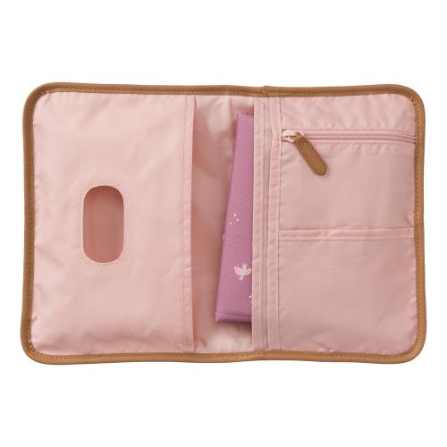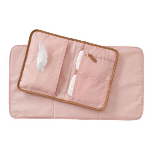 Представлява здрав калъф с ластик за затваряне, така че нищо да не изпадне. При отваряне има подложка за смяна на памперси, два големи джоба и един с цип. Подложката за преобличане се отваря лесно и се сгъва обратно с лекота. Можете лесно да почистите с влажна кърпа.
