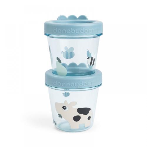 2 бр. Бебешки контейнери за храна Done by Deer Tiny Farm Blue