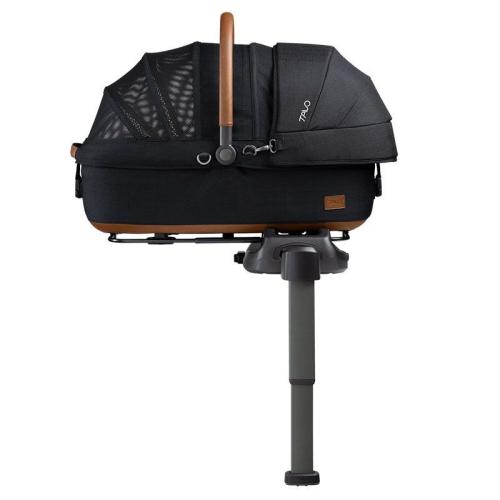 Tavo Maeve се закрепва директно към базата, а цветни индикатори потвърждават правилното заключване. Удобно разположен бутон за освобождаване улеснява прехода от кола към количка или дом.