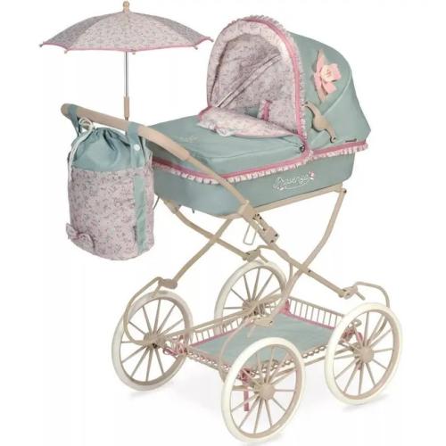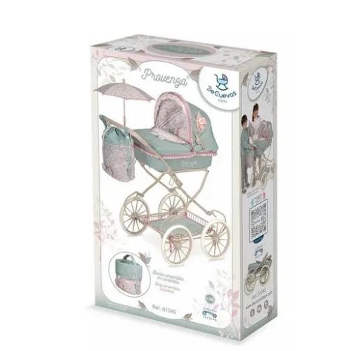Елегантната количка за кукли Provenza впечатлява със стилен дизайн и внимание към детайла. Тя е сгъваема, лека и практична – с окачване за по-реалистично усещане при игра. Красивият капитониран плат, сенникът с ластици и декоративното цвете придават изисканост и чар.