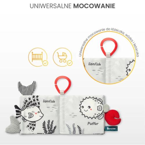 Черно-бялата сензорна книжка е уникална играчка, създадена да стимулира сетивата на детето. Тя комбинира илюстрации с различни текстури и звуци, предлагащи на бебетата богато сензорно преживяване. Простата, но интригуваща цветова палитра в нюанси на черно и бяло ефективно стимулира зрението на бебетата. Всяка страница съдържа различни материали и елементи, които писукат или шушукат. Благодарение на използването на безопасни материали и меки страници, книжката е идеална както за вкъщи, така и в движение.