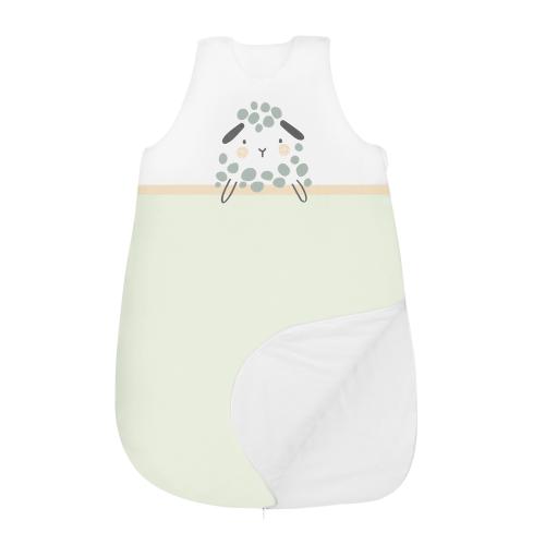 Изработен е от висококачествен памук ранфорс и памучно трико, които са меки към кожата и подходящи за продължителен контакт. Пълнежът от лека полиестерна вата поддържа нужната топлина без да утежнява или запарва, като така се постига баланс между комфорт и дишаща структура. Разкопчаването с цип по цялата страна и допълнителният протектор улесняват обличането и събличането, като същевременно предпазват бебешката кожа. Презрамките се закопчават с тик-так копчета – лесно и удобно решение в натовареното ежедневие.