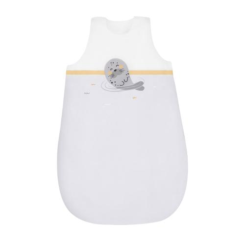 Изработен е от висококачествен памук ранфорс и памучно трико, които са меки към кожата и подходящи за продължителен контакт. Пълнежът от лека полиестерна вата поддържа нужната топлина без да утежнява или запарва, като така се постига баланс между комфорт и дишаща структура. Разкопчаването с цип по цялата страна и допълнителният протектор улесняват обличането и събличането, като същевременно предпазват бебешката кожа. Презрамките се закопчават с тик-так копчета – лесно и удобно решение в натовареното ежедневие.