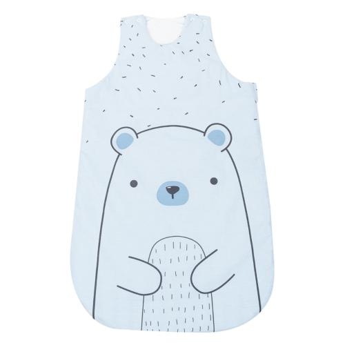 Изработен е от висококачествен памук ранфорс и меко памучно трико – тъкани, които осигуряват нежно усещане върху бебешката кожа. Вътрешният пълнеж от лека полиестерна вата задържа топлината ефективно, без да ограничава движенията на бебето или да създава усещане за претопляне. Това прави чувала подходящ за продължителен нощен сън, както и за следобеден отдих в по-хладни помещения.