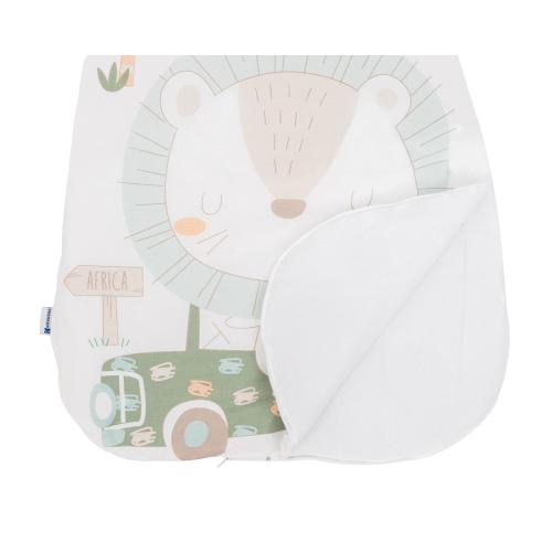 Със своя закачлив дизайнерски принт Jungle King, този спален чувал добавя стил и настроение в бебешката стая. Сертифициран по стандарт EN 16781 и произведен в България, той отговаря на най-високите изисквания за качество и безопасност.