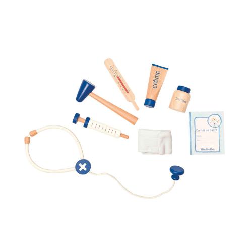 Открийте очарователния лекарски комплект в куфарче от Moulin Roty – перфектен избор за всички бъдещи лекари! С много добре изработени дървени аксесоари и удобен куфар за съхранение и пренасяне, тази играчка ще вдъхнови малчуганите да развиват въображението си и да се впуснат в ролеви игри.