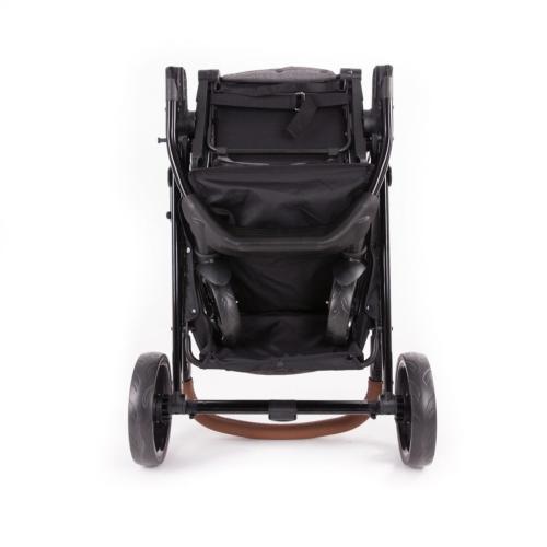 Големият сенник с UPF 50+ защита предпазва детето от вредните слънчеви лъчи. Дръжката и предпазният борд са облечени с покритие от изкуствена кожа, което добавя елегантност и удобство при използване. Големият кош за багаж предоставя достатъчно място за съхранение на детски принадлежности и покупки.