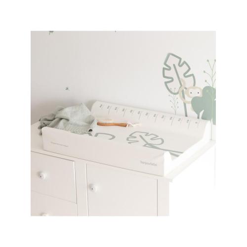 Практичният дизайн включва метър за следене на растежа, което превръща всеки момент на грижа в малък ритуал за наблюдение на развитието на вашето дете. Компактният ѝ размер от 50 x 70 см я прави подходяща за поставяне върху повивалници, скринове или други равни повърхности.