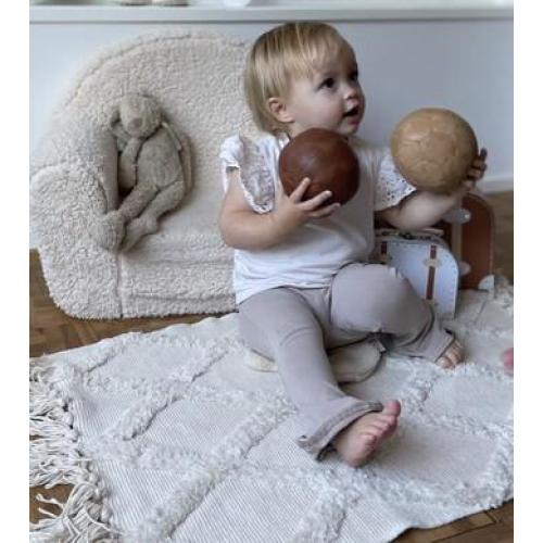 Класическият „vintage“ дизайн придава стилен вид, а компактната и лека форма прави топката лесна за хващане от малките детски ръчички. Тя е едновременно красива и функционална – подходяща за активна и безопасна игра.