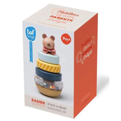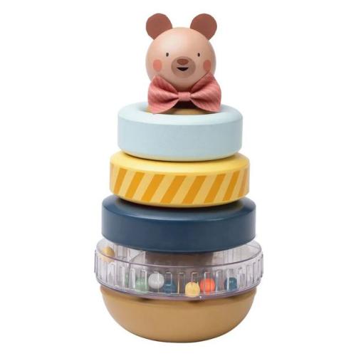 С очарователна глава на мече, играчката е не само функционална, но и визуално привлекателна, което я прави чудесно допълнение към всяка игра. Включва четири цветни ринга – два плътни, един с шарка и един прозрачен ринг, пълен с дрънкащи мъниста – осигуряващи визуална, тактилна и слухова стимулация за безкрайно сензорно изследване.