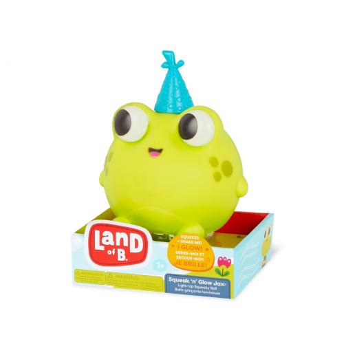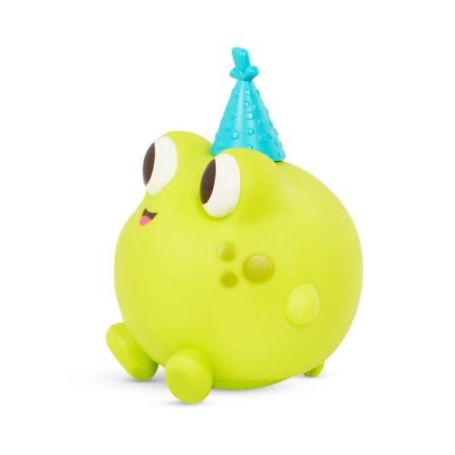 Светещата бебешка топка Battat с форма на жаба е интерактивна играчка, която комбинира светлини, звук и забавни движения, за да стимулира вниманието и развитието на детето. При натискане топката издава забавен звук, свети и шапката на жабата подскача, като по този начин привлича интереса на малките играчи и ги насърчава да взаимодействат с играчката.