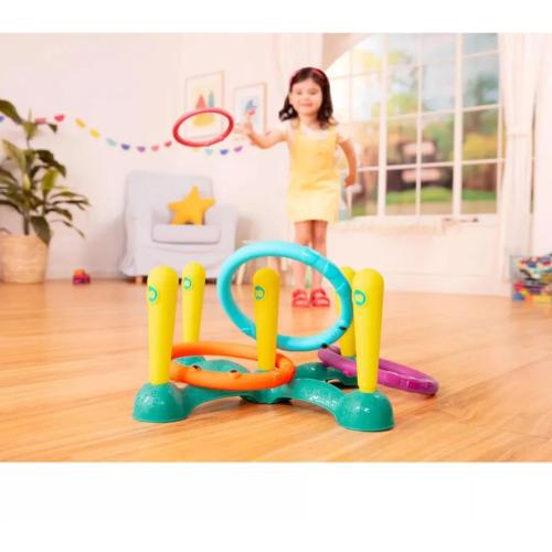 Комплектът Battat – Хвърляне на рингове е забавен и образователен начин детето да се забавлява, докато усъвършенства моторните си умения и учи на състезателен дух в безопасна и интерактивна среда.