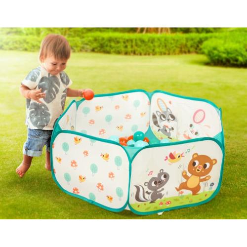 Арената се сглобява лесно за секунди и осигурява часове весело забавление. Включените 45 устойчиви на смачкване топки са леки, меки и напълно безопасни за игра както в затворени помещения, така и на открито.