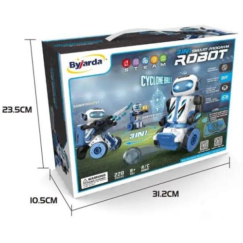 Електронен конструктор BoyBot 3в1 е комплект за сглобяване на един от три модела: разносвач, снайперист или футболист. Всеки робот изпълнява свое собствено уникално действие.