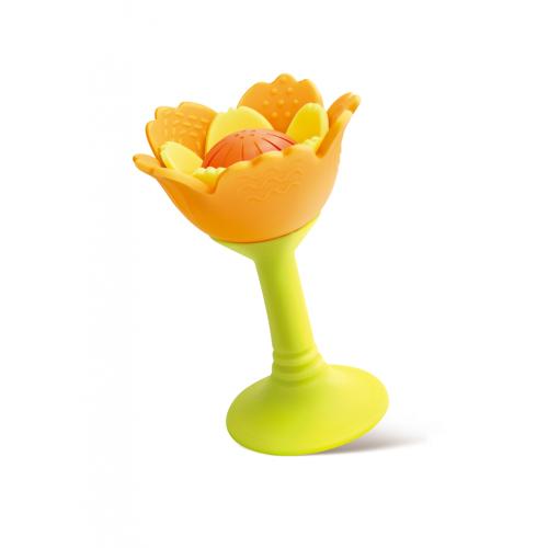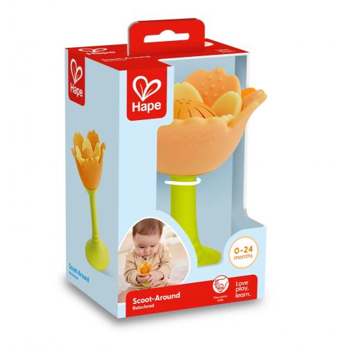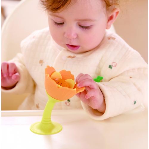 С бебешката дрънкалка и гризалка Hape – Оранжево цвете, всяка игра се превръща в момент на нежност, радост и безопасно опознаване на света чрез звук, допир и движение.