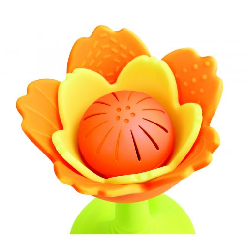 * Дрънкаща сърцевина – при разклащане цветето издава нежен дрънкащ звук, който развива слуха и стимулира интереса на бебето.