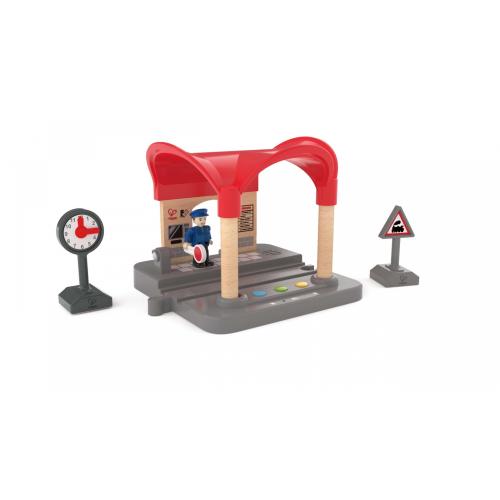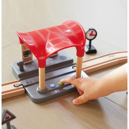 Гарата разполага с бутон за светлина и звук, чрез който децата научават повече за сигналите и реда на движение на влаковете. Така играта се превръща не само в забавление, но и в образователно преживяване, което развива логическото мислене и концентрацията.