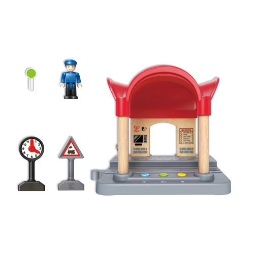 Изработена от висококачествени и безопасни материали, интерактивната гара е съвместима с всички влакови писти Hape и предлага безброй възможности за сюжетна и ролевa игра.