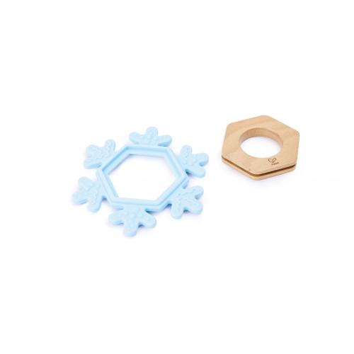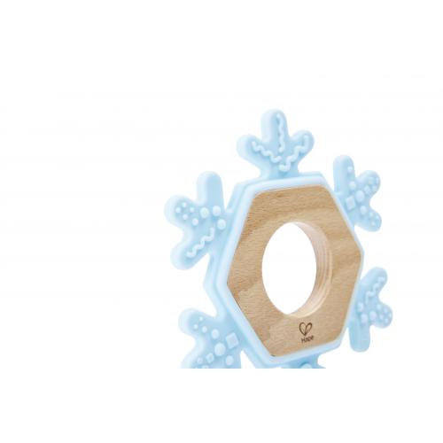 Формата на снежинка не само привлича вниманието на бебето, но и улеснява захващането с малките ръчички. Разнообразната текстура на силиконовите части масажира нежно венците, като помага за облекчаване на напрежението при никнене на зъбки. Играчката насърчава изследването чрез допир и захапване, като стимулира сензорното и моторното развитие.