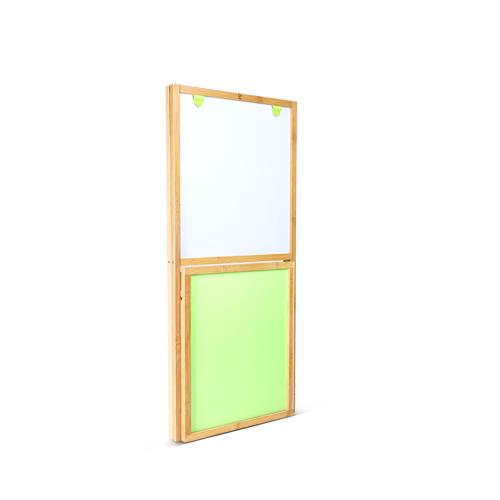 Стативът е изработен от висококачествен бамбук, здрав и стабилен, с гладка повърхност и безопасни ръбове за децата. Двустранният дизайн осигурява възможност за игра на две деца едновременно, а качествените материали гарантират дълготрайна употреба.