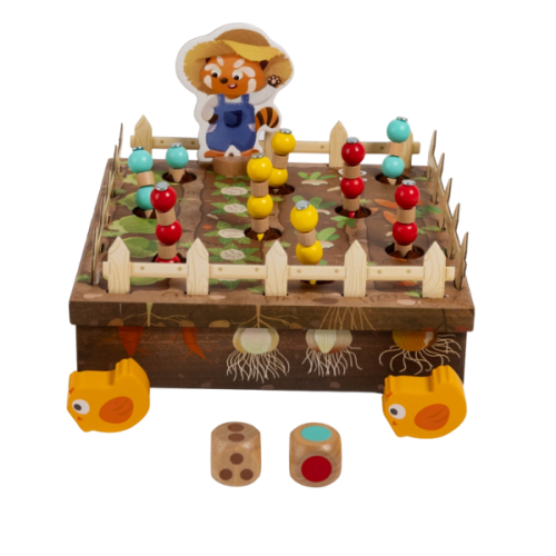 Играта е изработена от безопасни, здрави и трайни материали. Фигурките на кокошки и червеи са внимателно оформени, с гладки ръбове и ярки цветове, които привличат вниманието и осигуряват дълготрайна употреба дори при активно играене.