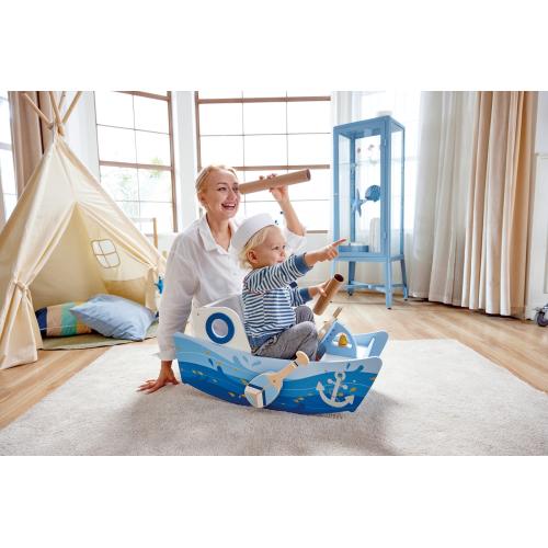 Открийте безкрайните възможности за игра с детската дървена лодка Hape, създадена за въображаеми морски приключения. Лодката комбинира забавление, ролеви игри и развитие на креативността, като позволява на децата да се потопят в света на пиратите, мореплавателите или откривателите.