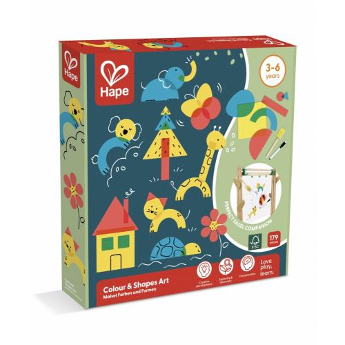 Открийте вдъхновяващия свят на цветовете и формите с детския творчески комплект Hape „Цветове и форми“. Този комплект съчетава забавление и обучение, като насърчава децата да изразяват своите идеи чрез изкуство, игра и експериментиране с различни цветове и фигури. Той е идеален за малки художници, които обичат да създават, откриват и развиват своето въображение по нови начини.