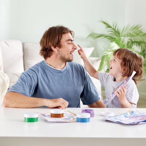 Играта с този комплект стимулира фината моторика, координацията око-ръка, творческото мислене и разказването на истории, като същевременно насърчава въображението на децата и участието им в ролеви игри. Малките художници могат да създават свои истории чрез визуални елементи и да изследват различни техники за рисуване, докато се забавляват.