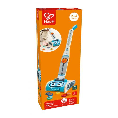 Детският комплект за игра Hape, Прахосмукачка робот е забавна и образователна играчка, създадена да вдъхновява децата да поддържат ред и чистота по време на игра. Със своя симпатичен дизайн и усмихнато лице на робот, тази прахосмукачка не само изглежда очарователно, но и наистина „работи“ – тя може да засмуква шест цветни петна, включени в комплекта. Играчката е идеална за ролеви игри и насърчава малчуганите да имитират дейностите на възрастните по интересен и достъпен начин.