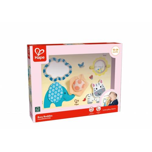 С детската дъска за сензорни дейности Hape Заети приятели вашето бебе ще изследва света около себе си по забавен и безопасен начин, развивайки ключови умения и стимулирайки любопитството и въображението.
