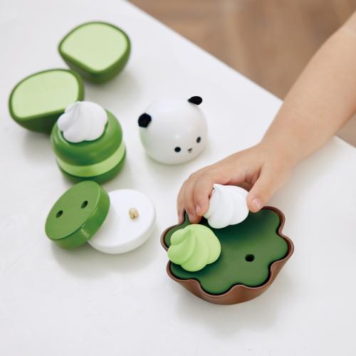 С детския дървен комплект за игра Hape, Десерт от зелен чай, малките пекари могат да се потопят в света на кулинарното въображение, като организират собствени тортени партита. Комплектът насърчава креативността, ролевите игри и социалното взаимодействие с приятели и семейство.
