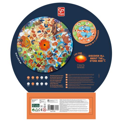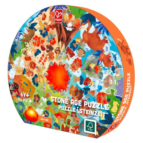 С детския образователен пъзел за под Hape, Каменна ера, децата ще се потопят в забавен и интерактивен урок по история. Този колоритен подов пъзел от 100 части представя най-ранните човешки постижения от каменната ера, включително палеолит, мезолит и неолит, като стимулира любопитството и знанията за древната история.