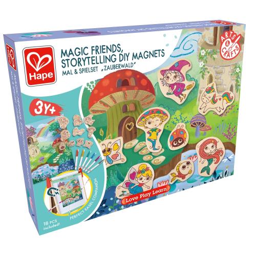 С детския творчески комплект Hape, Направи си сам магнити, Вълшебни приятели, децата ще могат да изразят въображението си и да създадат собствена колекция от магнити с магически приятели. Комплектът предоставя възможност за креативна игра, като съчетава изкуство и забавление за малките творци.