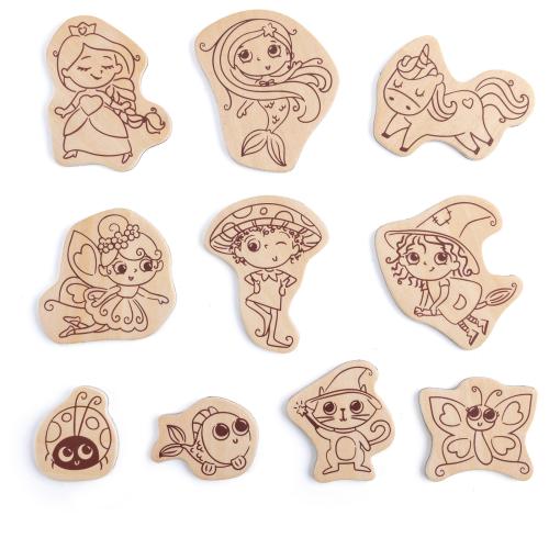 Магнитите са изработени от шперплат, а комплектът включва безопасни, нетоксични маркери и висококачествен фон за рисуване. Всички материали са устойчиви на многократна употреба и безопасни за деца.