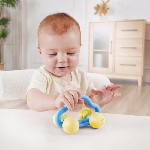 С бебешката дървена дрънкалка и зризалка 2в1 Hape, Кола, малките изследователи ще се забавляват, докато развиват фините си двигателни умения и координацията око-ръка. Тази ярка и мека играчка е идеална както за първи опити за пълзене и ходене, така и за никнене на зъбки, като предоставя безопасен и забавен начин за сензорно изследване.