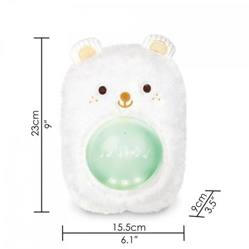 С музикалната плюшена лампа за сън Hape, Мече, спокойният сън на вашето бебе е гарантиран. Това очарователно пухкаво мече съчетава в себе си мекота, уют и интелигентни функции, които успокояват бебето и улесняват заспиването му. То е идеалният нощен приятел, който създава безопасна и комфортна атмосфера за сън от самото раждане.