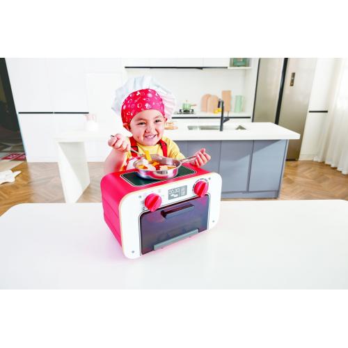 Дървената фурна с променящи се цветове Hape е перфектният избор за малки готвачи, които искат да експериментират в своята кухня и да усетят радостта от „истинското“ печене. Тя превръща всяка игра в вкусно и вдъхновяващо приключение.