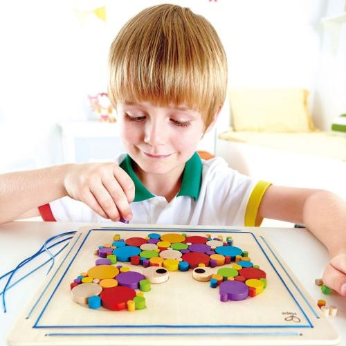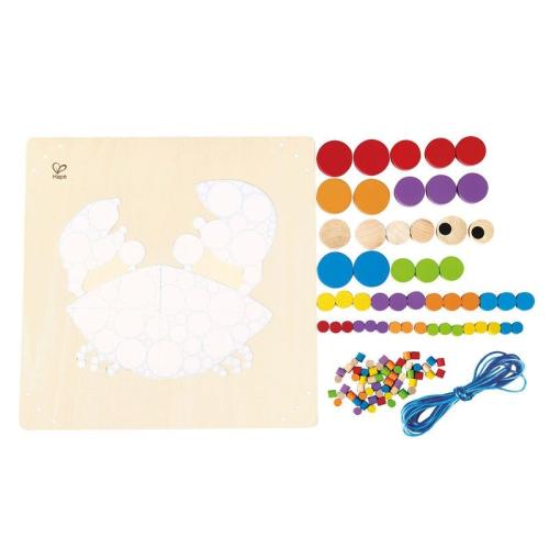 Дървената мозайка Hape, Рак е идеалната творческа играчка за малки художници, които обичат да експериментират с цветове и форми, да развиват фината си моторика и да създават красиви декорации за своята стая, докато се забавляват.